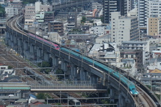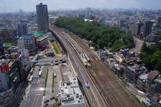 | ここでは、真下を新幹線、JR京浜東北線など、鉄道ファンにはうれしいスポットです。 ちょうど、あきたこまち新幹線と、東北新幹線が連結された、赤と緑の車両が通過していきました。 |