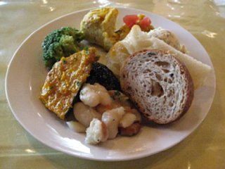 写真は、白いんげんのアクアコッタ(水煮)、紅茶パン、フォカッチャ、イタリア風オムレツ、ブロッコリーの胡麻和えなどです。紅茶パンはとても香りがよくおいしかったです。フォカッチャには洋梨バターがとてもよくマッチちておいしかったです。