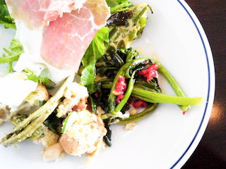 和食に使われるとばかり思っていた山菜こごみも、ソテーされてお皿の上に乗っていてびっくり! |
