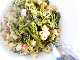 ブロッコリーがたっぷり入っていて、おいしかったです。このショートパスタ、もちもちしていて食べ応えがありました。