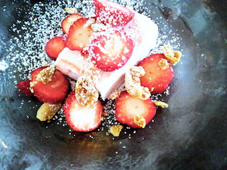 こちらは友達が「おいしい!」と言っていました。イチゴも少し凍っていたようです。今日は夏日となった大津。暑いときには最高のデザートですね♪ |