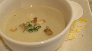 こんなナスのポタージュが出てきて驚きました。