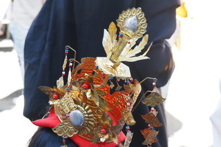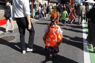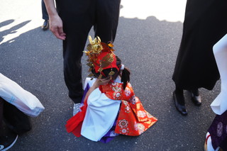 沿道からの「お稚児さんかわいい〜」「写真撮っていいですか?}の声に笑顔も見せていたるーですが、およそ1時間ほど練り歩くうちにだんだん疲れも見えてきました。