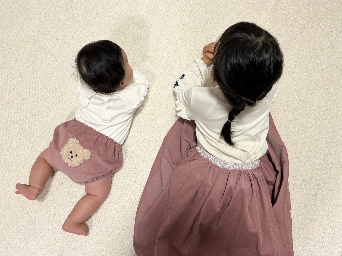 全くおそろいのコーデではなくても、さりげなくリンクしているスタイルも姉妹らしくていいなと思います。
