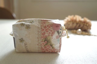 4種類のシートを貼り付けているのでちょっと分厚くて縫いにくい部分もありますが、工程の簡単なこのようなポーチなら我が家の年老いたミシン(笑)でも縫えました。