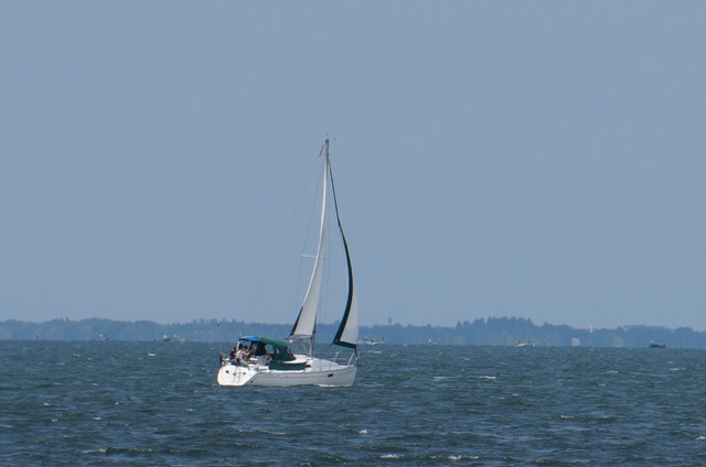 | 7月後半なのに、珍しく北からの乾いた風が琵琶湖に!ヨットも心地よさそうに滑走していました。 |