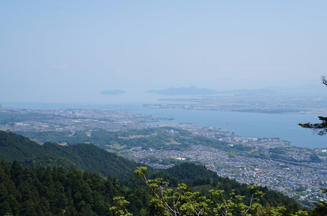 琵琶湖岸から望遠で覗いた伊吹山。何十キロも離れているのに、まるで琵琶湖に浮かんでいるように見えます。