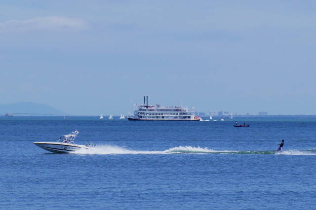 他にも白い帆のヨットや釣り人を乗せた小さなボート・・・。
