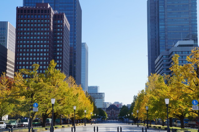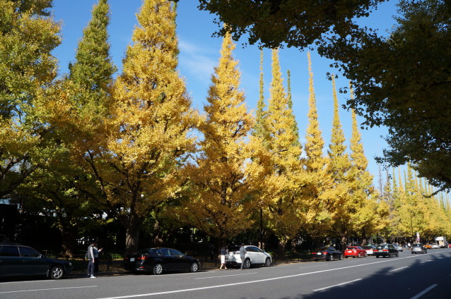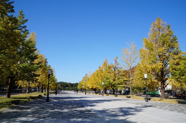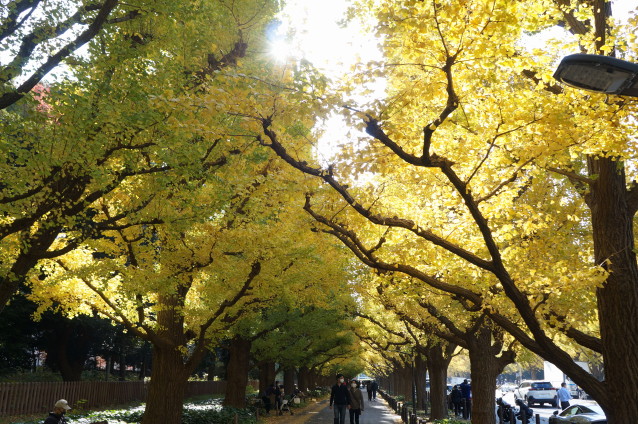 | まるで金色に光る並木!秋の高い空に、ちょっとひんやりした空気が気持ち良いですね。 |