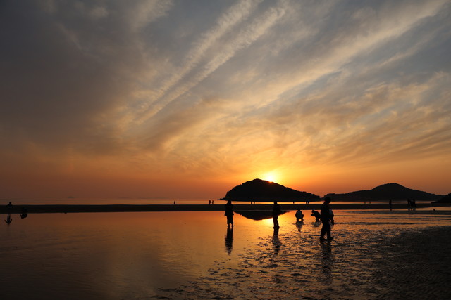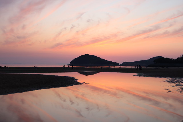 | 日本のウユニ塩湖とも言われる、父母ヶ浜の絶景です。ミレーリングされた夕日が美しい!! |
