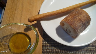 パンは、ゴマを練り込んだグリッシーニとバケットの2つ。