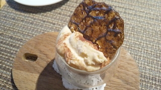 上に乗っている飴細工のようなものをパリパリと崩して、ティラミスと一緒に頂きました。スプーンを入れるごとにコーヒーやマスカルポーネチーズの味と混ざっておいしく完食です。