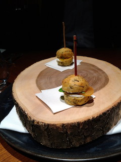 ブリオッシュにカラスミとリコッタチーズがサンドして
