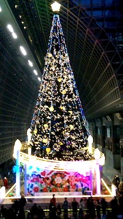 こちらは番外編で、京都駅の大階段にあるクリスマスツリー、かなり大きいです。 こちらも観光客も加わり大変賑わっていました。 |