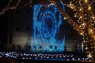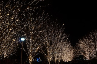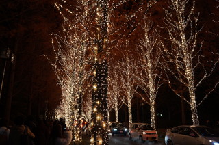 並木道がイルミネーションで輝いています。 また、クリスマスソングのイベントもあり、家族連れも楽しんでいました。 |