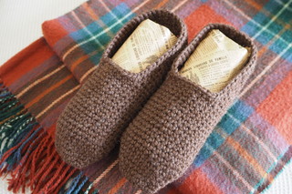 ルームシューズを編むのは久しぶり。
