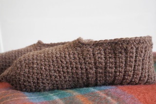 母が、着古したセーターをほどいて編んだルームシューズです。