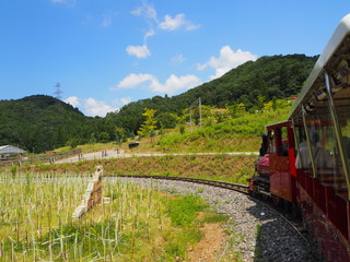 園内には、ローザン鉄道ミルキーウェイが走っています。高低差のある園内の移動にはうってつけ!真夏日でしたが、風が心地よかったです。 |