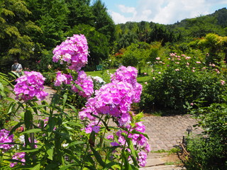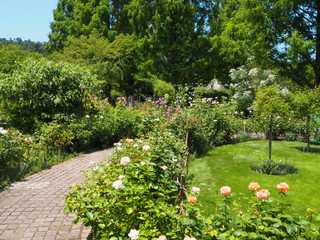 バラと宿根草の庭。バラに美しい花がいっぱいです。 |