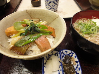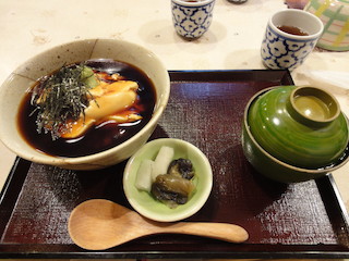 二念坂の途中、釜座さんで食事を頂きました。 −おぼろ丼 −生麩丼 −ゆば丼 |