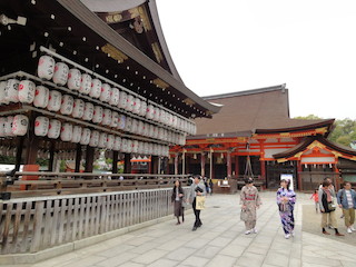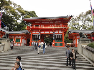 | 円山公園にある、坂本龍馬、中岡慎太郎の銅像。 | 八坂神社の境内。 |