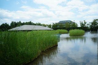 入館料1000円。入館ゲートを出てすぐの景色。 この水辺に建物が整然と建つ姿が何とも言えずに良いです。 日頃の空間から離れた世界のようです。 |