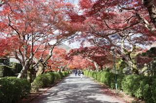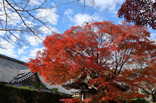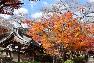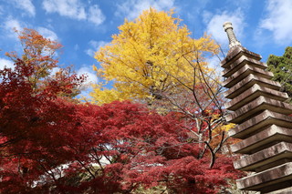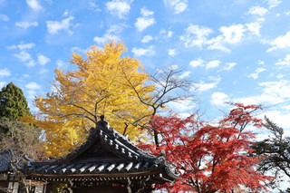 | 西教寺は参道から見事な紅葉が見られます。そして名物は本堂横にある大イチョウです。今がちょうど見頃でした。秋雲を背景に見事な姿をみせていました。 | |