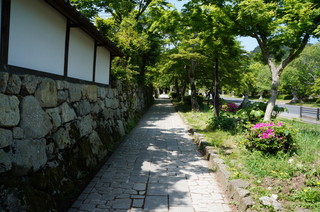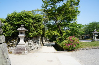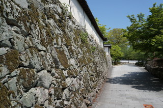 | 先ほどの鳥居をくぐり、左に曲がり進むと「滋賀院門跡」があります。古くは慈鎮和尚・慈円(1155〜1225)の里坊旧跡に、慈眼大師・天海が後陽成上皇より北白川の法勝寺の高閣を賜って元和元年(1615)に移築再建したものです。坂本の町並みはここを中心に中世の道や社をそのままに復興したと考えられています。 | ここの石積みも穴太衆によるものです。この穴太衆は、信長の時代に比叡山焼き討ちで石垣を崩そうにも崩せなく、これが穴太衆による技術であることを知り、安土城の石垣を施工させたことで一躍有名になりました。 |