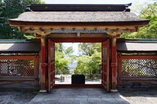 上述の滋賀院門跡にして山の方へ進みます。すると日吉東照宮の参道に出ます。階段の急なこと・・。そしてその参道の先には、日吉東照宮があり、これは徳川家康を祀る日光東照宮の雛形になったとされる「権現造り」となっています。確かに造営、色使いも日光東照宮のモデルと考えてもおかしくないですね。 |