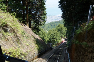 | すれ違いの様子。こうなっているんですね。 | かなり降りて来ました。琵琶湖も近く見えます。 |