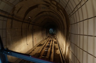 | ケーブルカーは満員のため先頭に立っていました。これがなかなか面白い。 | トンネルもあります。 |