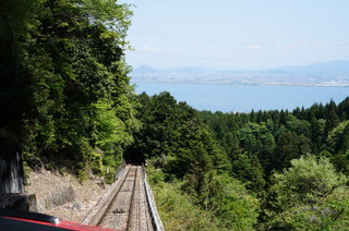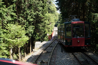 | さて、東照宮を後に、坂本ケーブルカーで延暦寺を目指すこととします。この駅舎、昭和2年の開業当時のもので、重要有形文化財に登録されています。また、このケーブルカーは長さで日本一とのことです。 | こんな感じ。 |