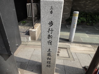 | 旧東海道の品川宿を出発です。 | さっそく、土蔵相模跡があります。「土蔵相模」は、高杉晋作など幕末の志士たちの会合場所としてよく登場する妓楼。桜田門外の変で大老・井伊直弼を襲撃した浪士たちも、前夜ここに投宿した場所です。 |
