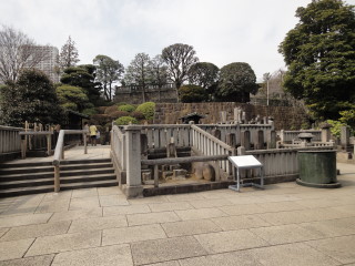 | 義士が本懐成就後、吉良上野介の首級をこの井戸水で洗い、主君の墓前に供え報告したところから「首洗い井戸」と呼ばれています。 | こちらが、その井戸です。 |