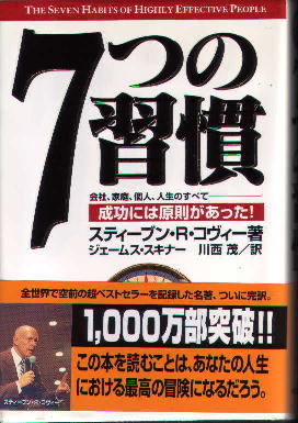 有名な 7つの習慣! 1000万部を越えるベストセラー この本では 原理原則の重要性を認識しました。自分にとっての原則はなにであるか?考えることが出来たと思います。 この原理原則は 自分の人生の目的、方向性のようなもの ですから 家族についても仕事についても 深く考えることになります。 このためにも 自分の変革を進めなければならない。パラダイムの変換 です。人は ほとんど「レンズ」を通して世間観をみている このレンズが いろんな価値観なんですね。 ぜひ ご推薦の一冊です。 |