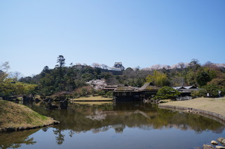 | 玄宮園からの彦根城。青い空と桜がコラボレーションが素晴らしいです | |