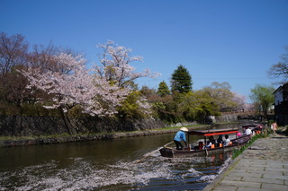 近江八幡の八幡掘りの桜。 桜の花が水面を飾る、この一瞬しか見られない景色が広がっていました。 |