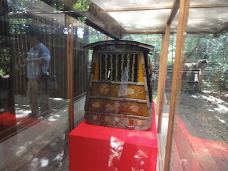 | これは、篤姫が実際に使用されたとされる籠です。案外小さいさかったです。 | これは、現在の天皇陛下がご結婚されたときの、パレードで使用されたオープンカー。 |
