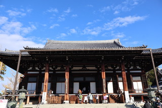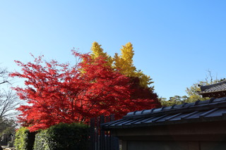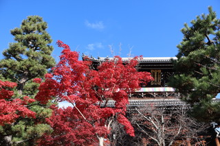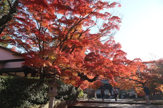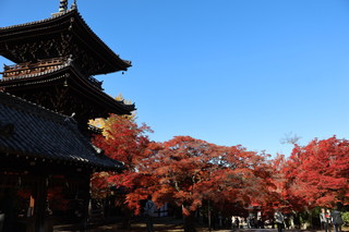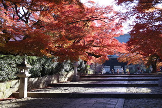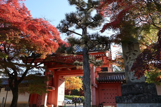 山門をくぐると、紅葉のトンネルが続きます。そして境内の三重塔と青空、そして紅葉の絵は最高に美しいです。 |