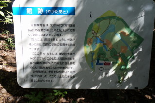 | この日は台風が来る前でしたが、青空でした。 | 白金豪族の館のあとがありました。土塁だけですが。 |