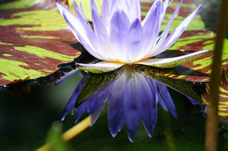 | これは温室内のハス。色がすごいですね。 | これは鏡蓮で、水面に反射した姿が美しい。 |