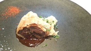 メインのお料理は、黒毛和牛の京湯葉包みをチョイス。お魚料理にすることもできるようです。パリっと揚がった湯葉にしっとりお肉が包まれて、贅沢な一品です。
