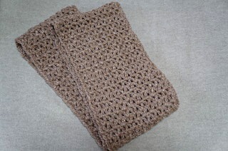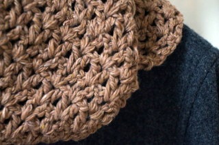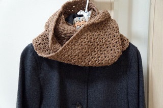 それで家にあったモカっぽい色の毛糸で、長編みとくさり編みで簡単スヌードを編みました。