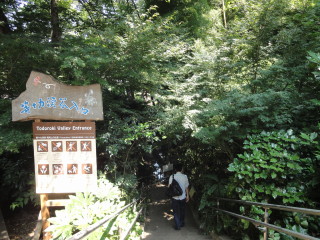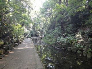 | 東急大井町線の等々力駅から徒歩五分ほどのところに入り口があります。 | こんな感じの渓谷です、清々しい場所です。 |