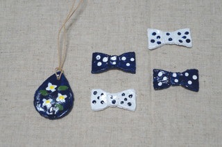 はんど&はあと7月号のキット「陶器風のかわいい雑貨」の中から、お箸おきと、ネックレスのトップを作りました。