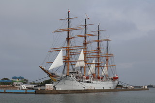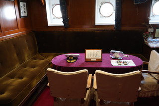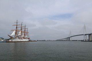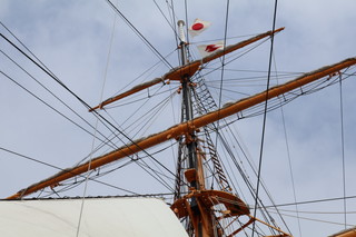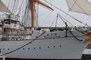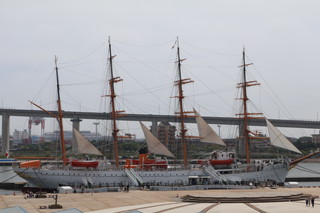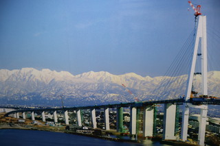 昭和5年に建造された実習訓練船「海王丸」停泊展示されている公園です。 船内見学ができ、当時のままで、船内探検は楽しかった! そして、この場所は立山連峰が臨める絶景のビューポイントなんです。しかし、この日はあいにくの曇りで、ここから立山を見ることができませんでした。 船内に飾ってあった写真でご覧ください、絶景です。 |