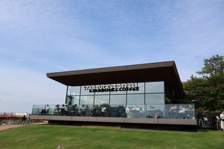 立山連峰が見たくて、富山市内へ移動。 市内から絶景ポイントのカナルパークへ行きました、ちょうど青空も広がり立山を見ることができました!ラッキー! そして、そこには世界一美しい?スタバもあります。 |