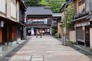| ひがし茶屋街は重要伝統建物保存地区で、建物の114のうち約3分の2が伝統的建築物です。タイムスリップした街並みに、今どきのカフェや食事どころが入っています。 | |
