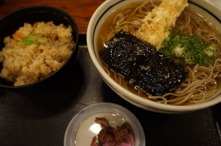 | お昼は四条通にある、尾張屋さんでお蕎麦をいただきました。 この尾張屋は室町時代の応仁の乱の2年後に菓子屋として尾張から移り、京で商いを始めたとのことで、1700年には御蕎麦屋をはじめ「御用蕎麦司」となり、御所へ出入りしたいた御蕎麦屋さんです。 |