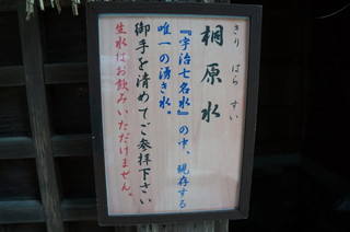 | 宇治七名水 桐原水。 宇治七名水とは、室町時代に、宇治茶の宇治七名園が定められ、そこでお茶に欠かせない七名水も定められました。今は 桐原水だけがかれずに存在しています。 |